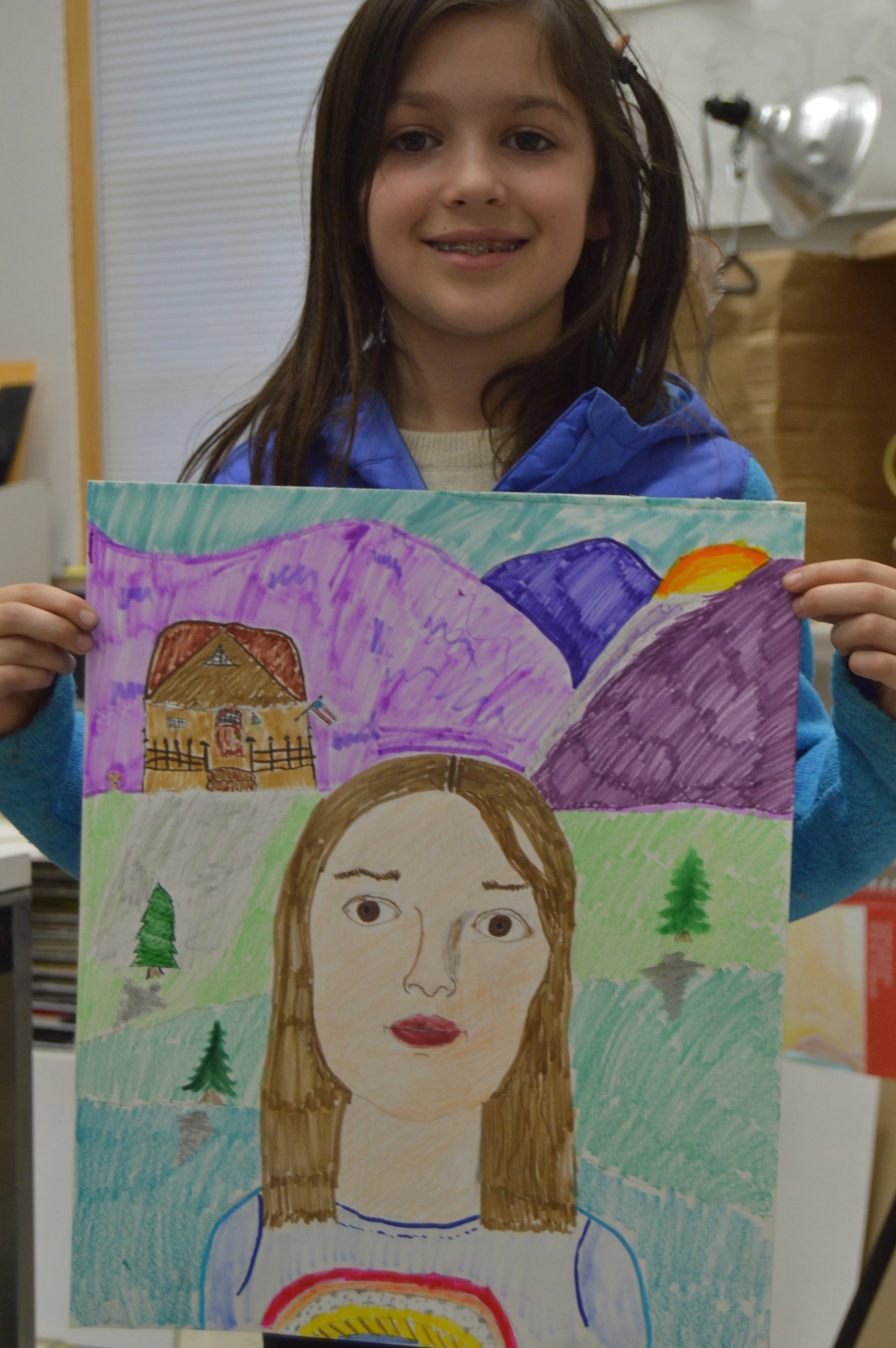 Photo of Ana with her self-portrait